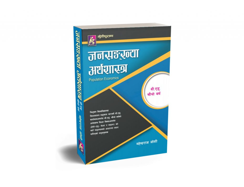 जनसंख्या अर्थशास्त्र (Population Economics) (बि.एड. चौथो वर्ष) मूल्य रु. ३९०/- भुँडीपुराण प्रकाशनको “जनसंख्या अर्थशास्त्र” बि.एड. चौथो वर्षका बिद्यार्थीहरुका लागी तयार पारिएको पाठ्यपुस्तक हो।यो पुस्तक त्रिभुवन विश्वविद्यालय शिक्षाशास्त्र संकाय चार बर्षे बि.एड. कार्यक्रमअन्तर्गत बि.एड. चौथो वर्षको नयाँ पाठ्यक्रम अनुसार तयार पारिएको छ। Post navigation Previous Previous post: Information Communication Technology in Education (B.Ed. 4th year)Next Next post: जनसंख्या शिक्षा शिक्षण विधि (Methods of Teaching Population Education) (बि.एड. तेस्रो वर्ष)