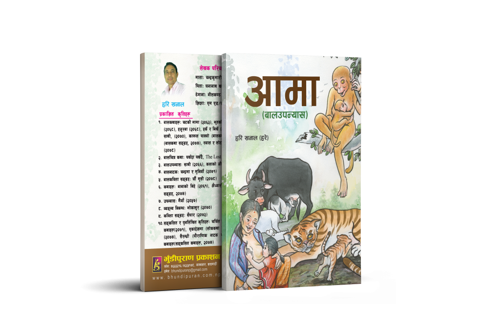 आमा (बालउपन्यास) मूल्य रु. २००/- भुँडीपुराण प्रकाशनको “आमा” हरि खनालद्वारा तयार पारिएको बाल उपन्यास हो।भोक लाग्यो आमा, निद्रा लाग्यो आमा, नयाँ लुगा चाहियो आमा, पेट दुख्यो वा ऐया भयो आमा, कतै ठेस लाग्यो आमा, लडियो भने बोल्ने पहिलो शब्द ऐया आमा।जन्मपूर्व नौ महिनासम्म गर्भभित्र बोकेर हिंड्ने आमा, गहिरो पीडा खपेर धर्तीमा ल्याइदिने आमा, घाउ दुखिरहेको छ, शरीर जलिरहेको छ तर शिशु देख्नासाथ मुसुक्क हाँसेर छिनमै दुख भुल्ने आमा। अनि आफ्नो छाती खोलेर चपचप दूध चुसाउने आमा।यो उपन्यास यस संसारका सम्पूर्ण जीवहरूका आमामा समर्पित छ। Post navigation Previous Previous post: व्यक्तित्व विकास कसरी गर्नेNext Next post: चींमुसी (बालकविता संग्रह)