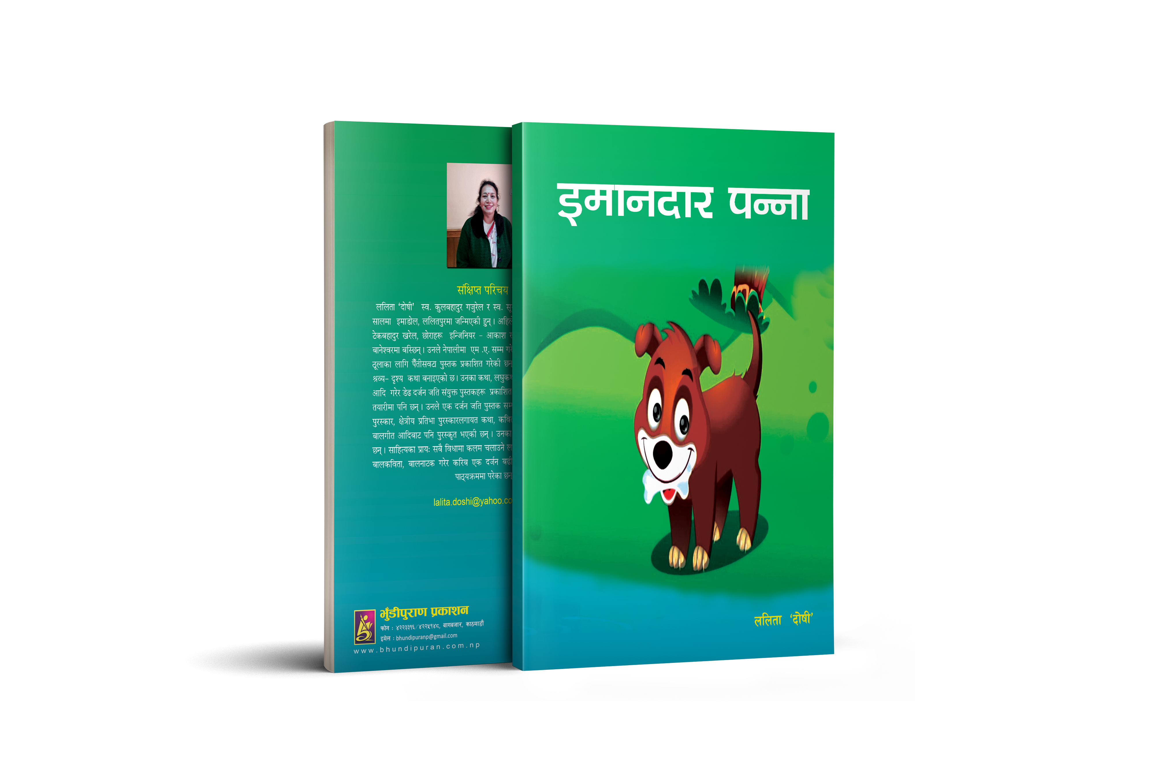 इमानदार पन्ना (बाल चित्रकथा) मूल्य रु. १५०/- भुँडीपुराण प्रकाशनको “इमानदार पन्ना” ललिता ‘दोषी’द्वारा तयार पारिएको बाल चित्रकथा हो ।प्रस्तुत पुस्तकमा एउटा कुकुरको बच्चाको कथा एकदमै रोमाञ्चक ढङ्गबाट प्रस्तुत गरिएको छ ।यो पुस्तक स-साना बालबालिकाका लागि निकै उपयोगी छ । Post navigation Previous Previous post: समकालीन नेपाली निबन्ध (निबन्ध सङ्ग्रह)Next Next post: अमरको अनार (सचित्र बालकथा)