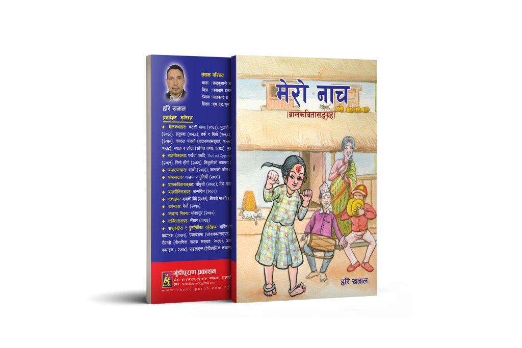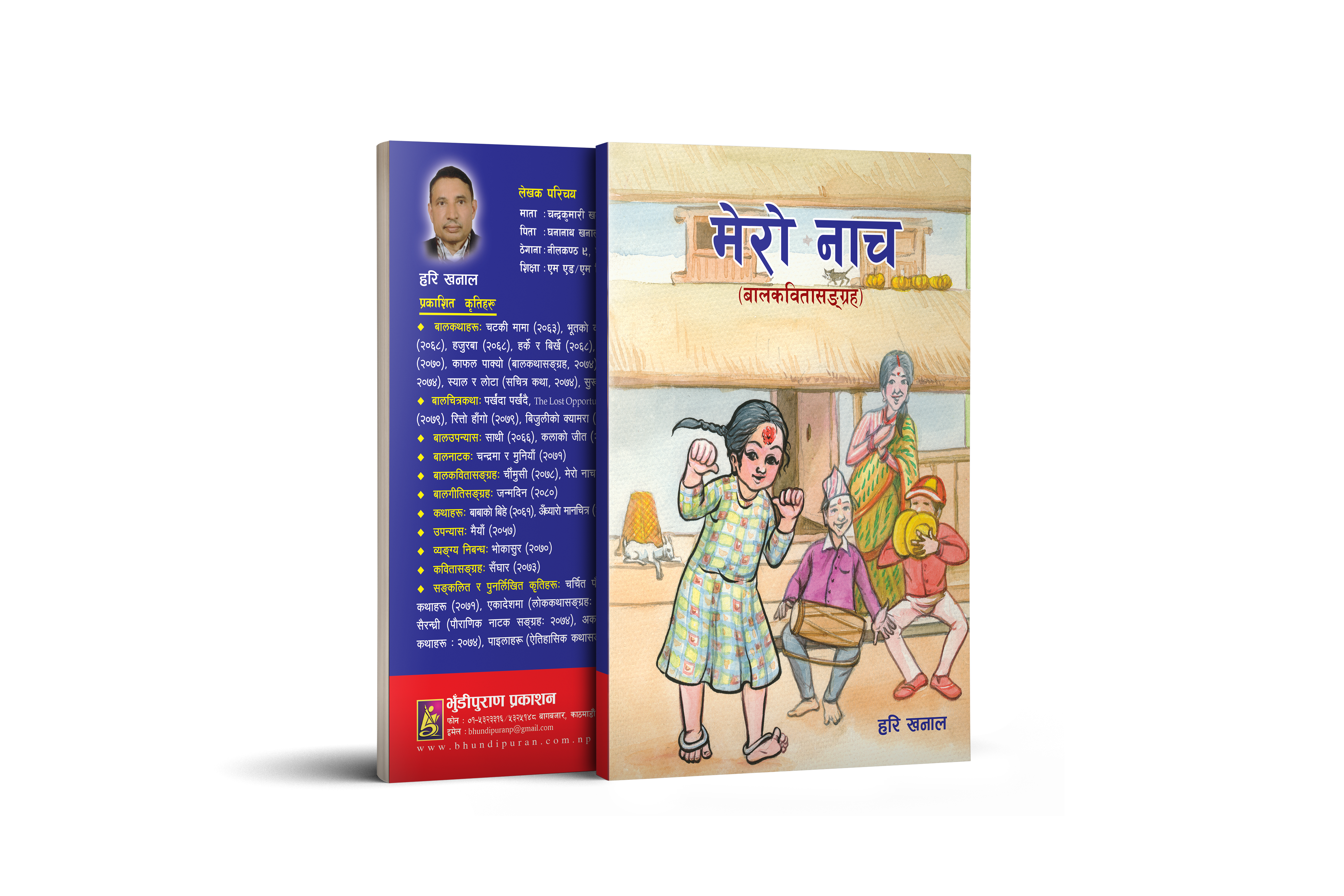 मेरो नाच (बालकवितासङ्ग्रह) मूल्य रु. १२०/- भुँडीपुराण प्रकाशनको “मेरो नाच” हरि खनालद्वारा तयार पारिएको बालकवितासङ्ग्रह हो ।यो कृति गीत नभएर कविता हो ।यसभित्र सात ओटा कविताहरू सानासाना भाइबहिनीका लागि हो ।बाँकी दुई कविताहरू क्रमशः ‘हिमाल’ र ‘सुन्दर संसार’ चाहिँ अलि ठूला बाबुनानीहरूका लागि उपयोगी हुनेछन् । Post navigation Previous Previous post: जन्मदिन (बालगीतिसङ्ग्रह)Next Next post: यथार्थवादी रचनादृष्टि र विवेचना