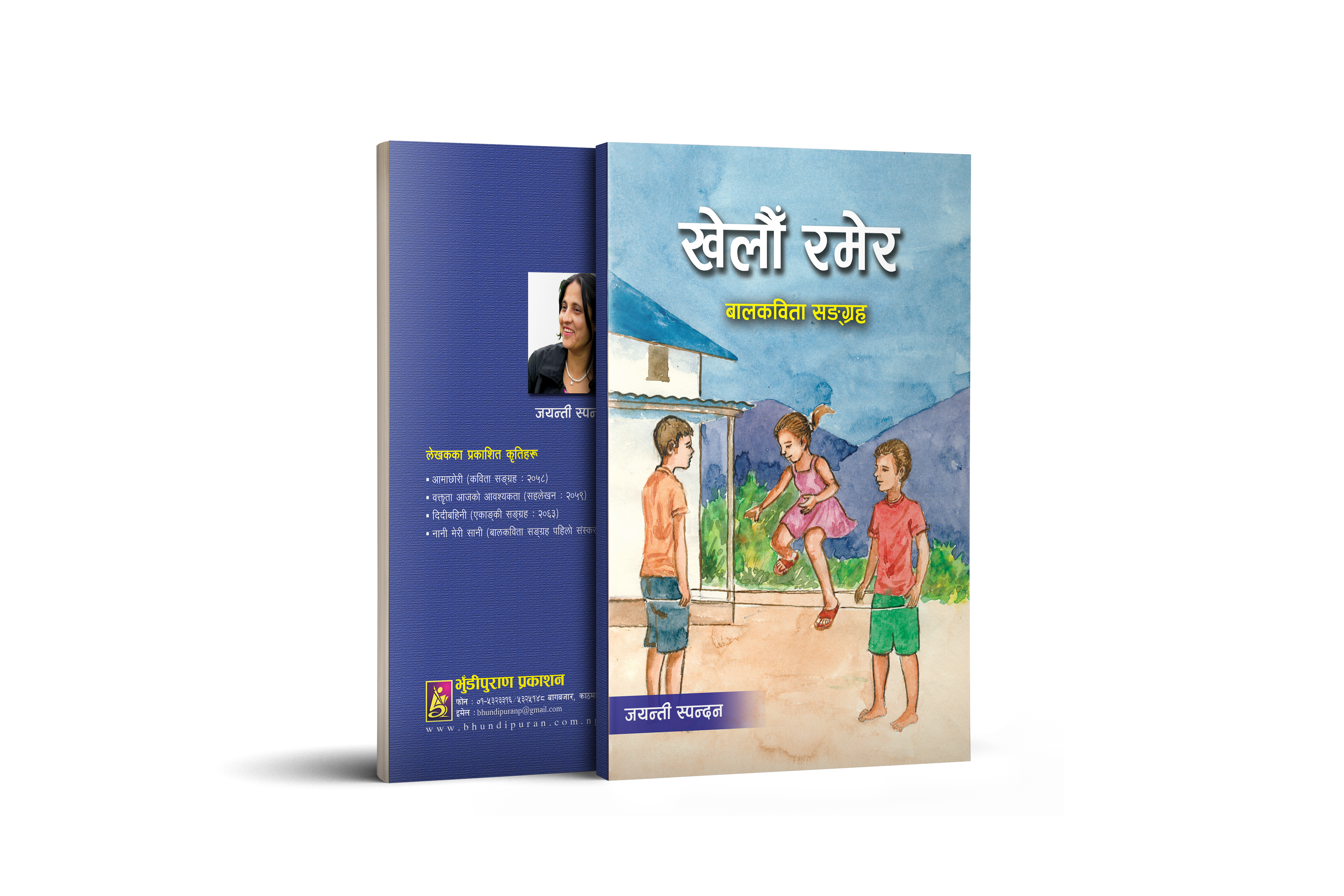 खेलौँ रमेर (बालकविता सङ्ग्रह) मूल्य रु. २५०/- भुँडीपुराण प्रकाशनको “खेलौँ रमेर” जयन्ती स्पन्दनद्वारा तयार पारिएको बालकविता सङ्ग्रह हो ।यो पुस्तक तीन वर्षदेखि दश वर्ष उमेर समूहका बालबालिकालाई सुहाउँदो देखिन्छ ।लयात्मक तरिकाले मनोरञ्जन दिलाउँदै बालबालिकाहरूलाई गाउँदै खेल्न र पढ्न उत्प्रेरित गरोस् भन्ने यस पुस्तकको अभिप्राय हो । Post navigation Previous Previous post: आमाबाबुको चिन्ताNext Next post: गुराँसझैँ (बालकविता सङ्ग्रह)