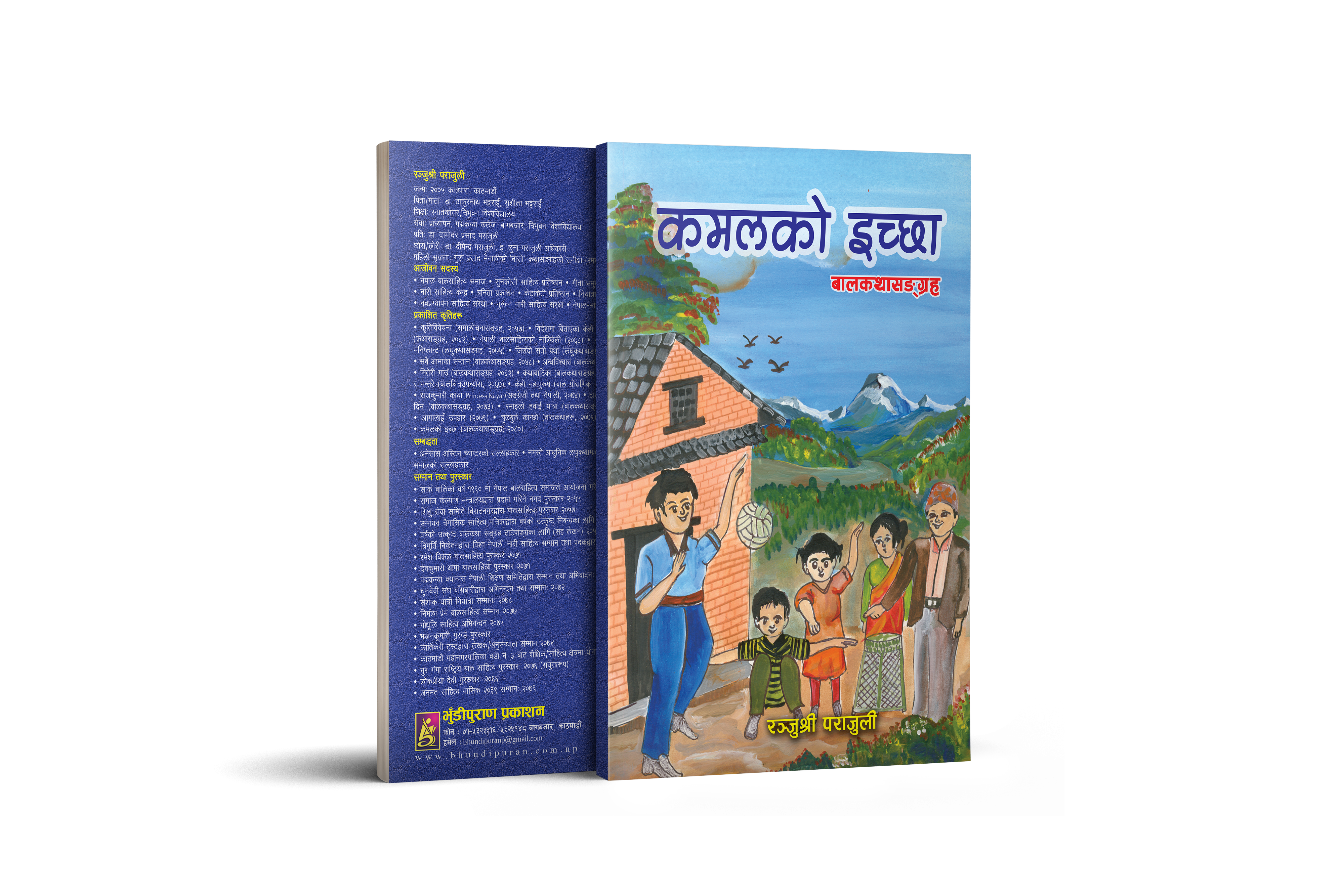 कमलको इच्छा (सचित्र बालकथासङ्ग्रह) मूल्य रु. १७०/- भुँडीपुराण प्रकाशनको “कमलको इच्छा” रञ्जुश्री पराजुलीद्वारा तयार पारिएको सचित्र बालकथासङ्ग्रह हो ।यस पुस्तकमा बालबालिकाका लागि उपयुक्त सामाजिक कथाहरू समावेश गरिएका छन् ।यस पुस्तकले बालबालिकाको वृद्धि, विकास र सोच्ने क्षमता अभिवृद्धिका लागि निकै मद्दत पुर्याउन सक्ने हाम्रो ठम्याई छ । Post navigation Previous Previous post: छोरी पनि स्कुल जान्छे (सचित्र बालकथासङ्ग्रह)Next Next post: बतासे डाँडामा पङ्खा (सचित्र बालकथासङ्ग्रह)